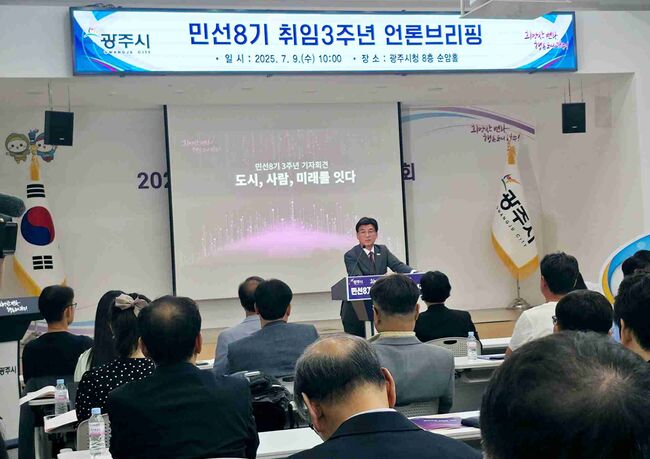 [TBA뉴스=김시창 기자] 방세환 경기 광주시장이 민선 8기 출범 3주년을 맞아 7월 9일 광주시청 순암홀에서 언론브리핑을 열었다. 방 시장은 지난 3년간의 시정 성과를 발표하고 철도 기반 교통도시로의 도약을 본격 선언했다. 아울러 방 시장은 이 자리에서 재선 출마 의사를 공식화하며 향후 비전과 전략을 상세히 밝혔다.