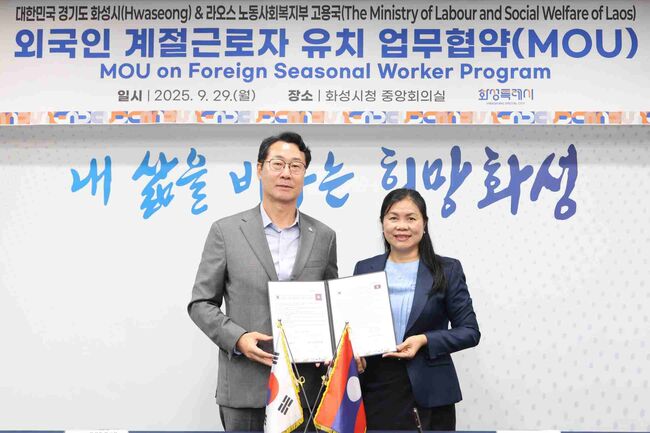 화성시는 농촌 고령화로 인한 심각한 인력난 문제 해결을 위해 해외와의 협력에도 적극 나서고 있다. 시는 최근 라오스 노동사회복지부 고용국과 '외국인 계절근로자 유치 업무협약(MOU)'을 체결하며 안정적인 농촌 인력 확보의 발판을 마련했다. 협약에 따라 화성시는 근로자의 근로조건 준수와 인권 보호, 무단 이탈 방지 등 관리 감독 역할을 맡는다. 라오스 정부는 근로자 교육과 송출 행정절차를 지원한다. 올해만 199명의 라오스 근로자가 배정될 예정인 가운데 내년 상반기부터 농가에 본격 배치된다.