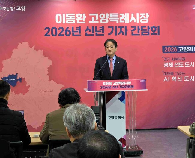 [TBA뉴스=김시창 기자] 이동환 고양시장은 15일 오전 시청 대회의실에서 신년 기자회견을 열고 2026년을 향한 도시 청사진을 제시했다. 특히 쓸모없던 땅은 시민의 부를 키울 경제영토로, 노후 도심은 살고 싶은 프리미엄 생활권으로 바꾸겠다는 의지를 나타내며 기대감을 높였다.