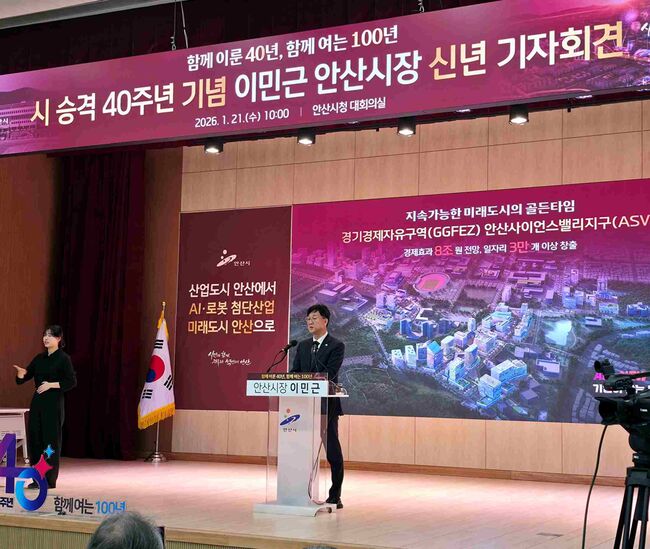 [TBA뉴스=김시창 기자] 2026년은 안산시(시장 이민근)가 시로 승격된 지 40주년을 맞이하는 뜻깊은 해다. 안산시는 산업화 상징이던 반월·시화 국가산업단지를 품고 성장해온 가운데 이제 AI(인공지능), 로봇을 핵심으로 한 첨단 미래도시 대전환 국면에 들어서고 있다.