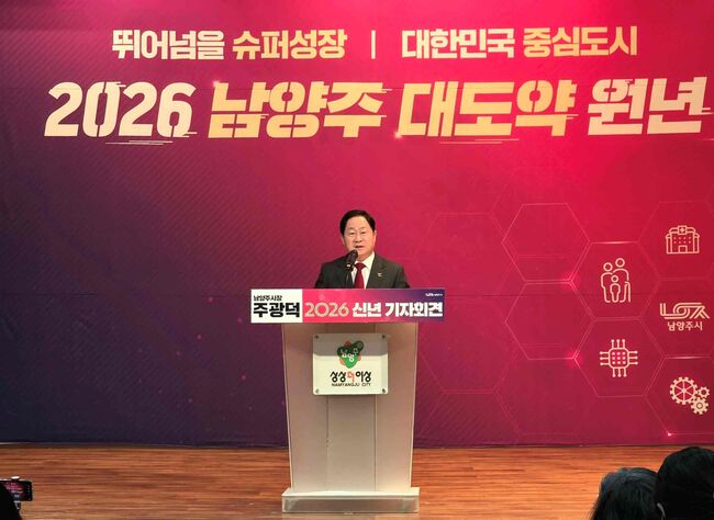 주광덕 남양주시장은 29일 신년 기자회견에서 “올해는 남양주의 지형을 바꿔 산업과 의료, 교통과 생활이 완성되는 100만 메가시티로 도약하는 대전환의 원년이 될 것”이라며 2026년을 도시 대전환의 출발점이라고 선언했다.