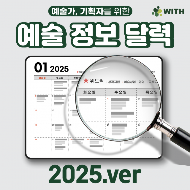 술인을 돕기 위해 2025년 예술정보달력과 지원사업 정리본을 제공하는 문화예술네트워크 위드의 크라우드 펀딩이 약 450%의 펀딩률을 달성하며 큰 호응을 얻고 있다.
