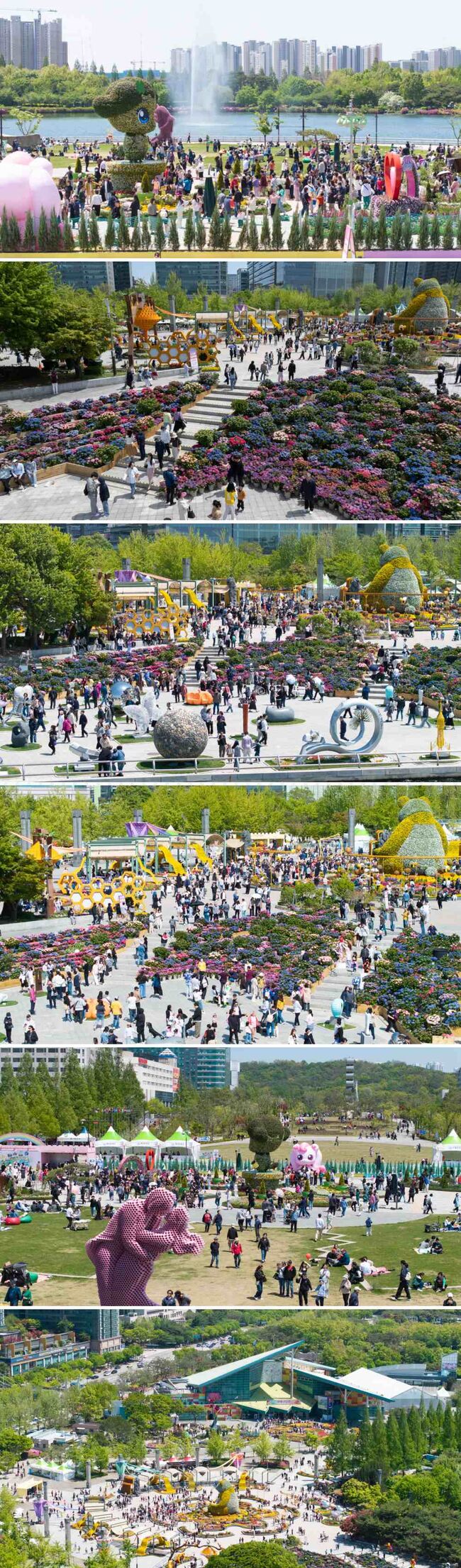 [TBA뉴스=김시창 기자] 4월 25일부터 5월 11일까지 개최되는 2025고양국제꽃박람회가 황금연휴와 맞물리며 나들이 나온 수많은 인파로 북적인다. 방문객들은 황금빛 판다가 있는 꿈꾸는 정원, 알록달록 티핑 정원, 수국정원 등 꽃으로 가득한 일산호수공원에서 연휴를 즐기고 있다.